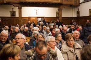 La belle église Saints Pierre et Paul est en grande tenue de fête et toute pleine pour une soirée »concert » en faveur d’un village népalais à reconstruire. L’équipe paroissiale de Dochamps, le Comité Culturel de Manhay, la chorale les Chantetard et l’Harmonie du Hérou de Nadrin ont conjugué leurs bénévolats pour offrir un spectacle musical de qualité. L’argent récolté est intégralement versé à la reconstruction du village sinistré. Nicole Brenu présidente de l’association SANGMO, qui parraine des enfants de réfugiés tibétains vivant au Népal, présente la soirée et le projet. Les Chantetard, 11 choristes menés par la joie pétillante de Marie-Jeanne Voz, proposent un répertoire profane et religieux ainsi que des chants de Noël. Après l’entracte, l’Harmonie Royale du Hérou riche d’une trentaine de musiciens,sous la baguette de Freddy Schmitz, alimentera l’enthousiasme du nombreux public.(HB)