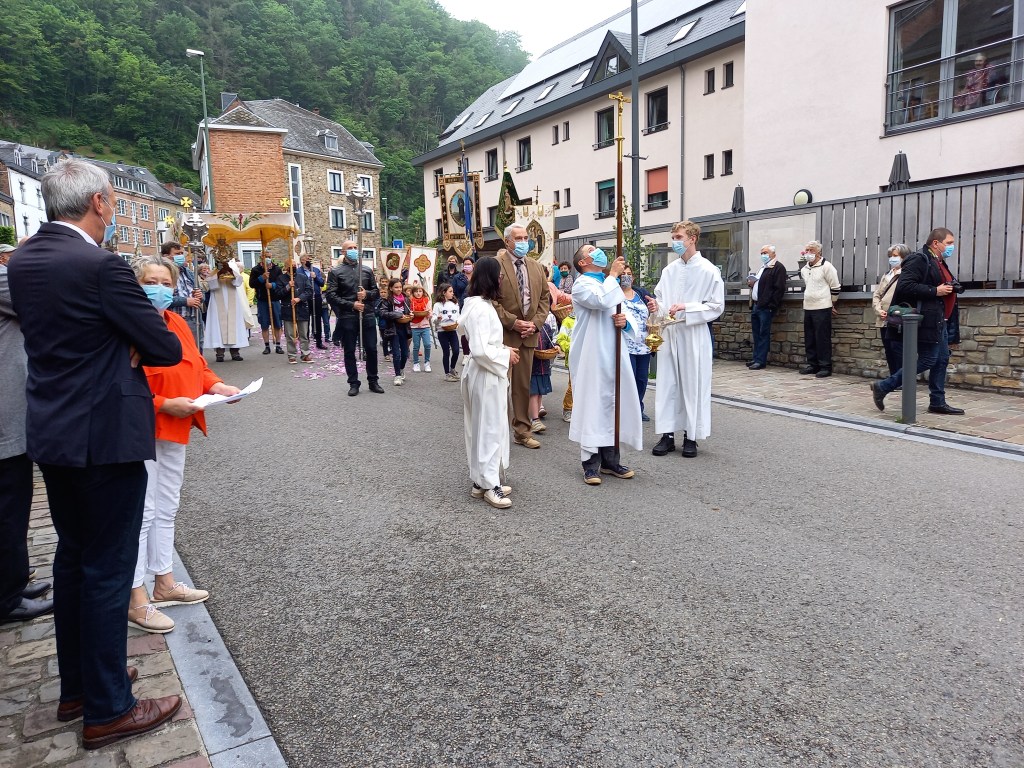 La Procession s’est tenue le 6 juin dernier. La kermesse de La Roche-en-Ardenne se déroule à la Fête-Dieu. Une Fête-Dieu qui est matérialisée, depuis des temps immémoriaux, par une procession dans les rue de la ville. Malgré la crise COVID et à l’instar de ce qui s’est déjà fait l’année dernière, cette procession s’est bien tenue, et ce dans le respect des protocoles édictes (l’Avenir le 8 juin 2021).