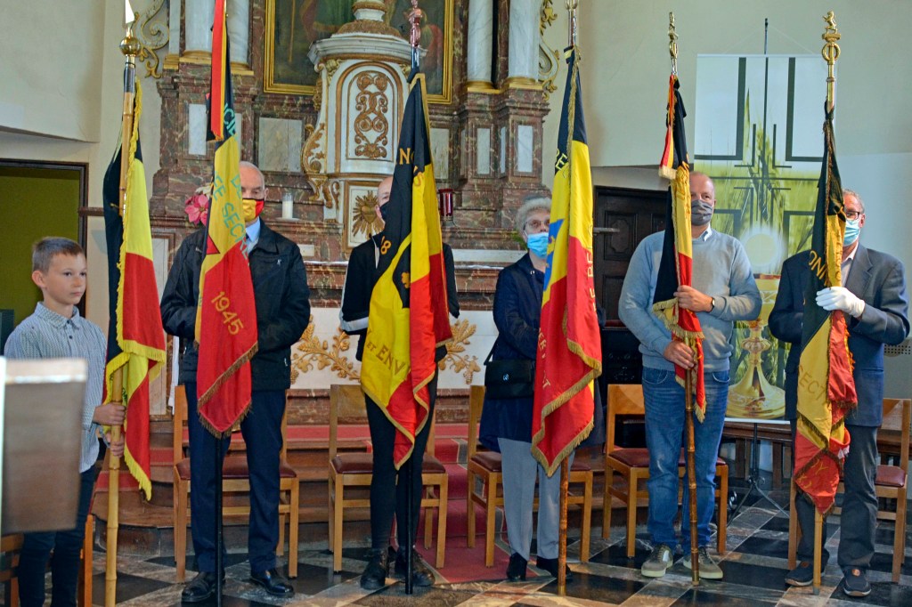 Après la messe tout le monde s’est dirigé vers le monument aux morts, et devant la chapelle des fusillés, pour y déposer des fleurs, sonnerie aux morts et de la Brabançonne, bénédiction et recueillement.