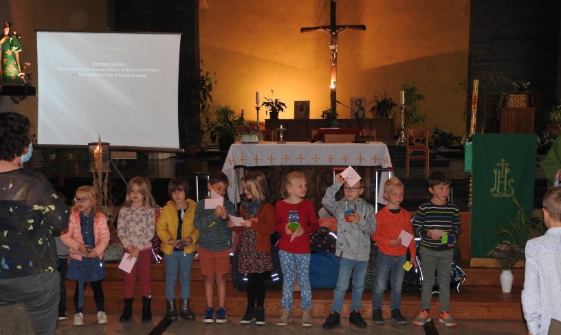 Pendant cette célébration, les enfants encouragés par le père Voidek ont présenté leurs bricolages réalisés au cours de la catéchèse avant cette messe.