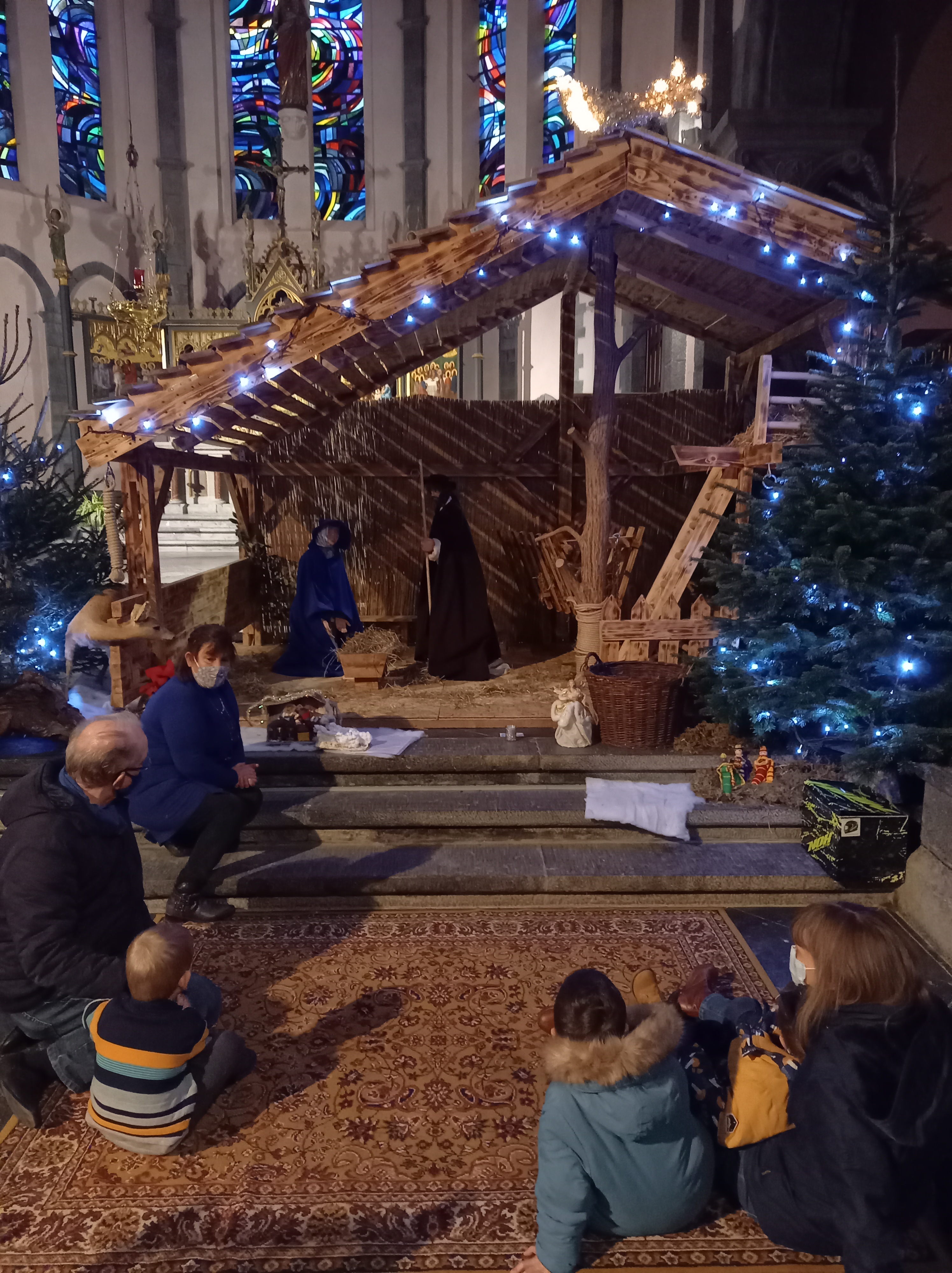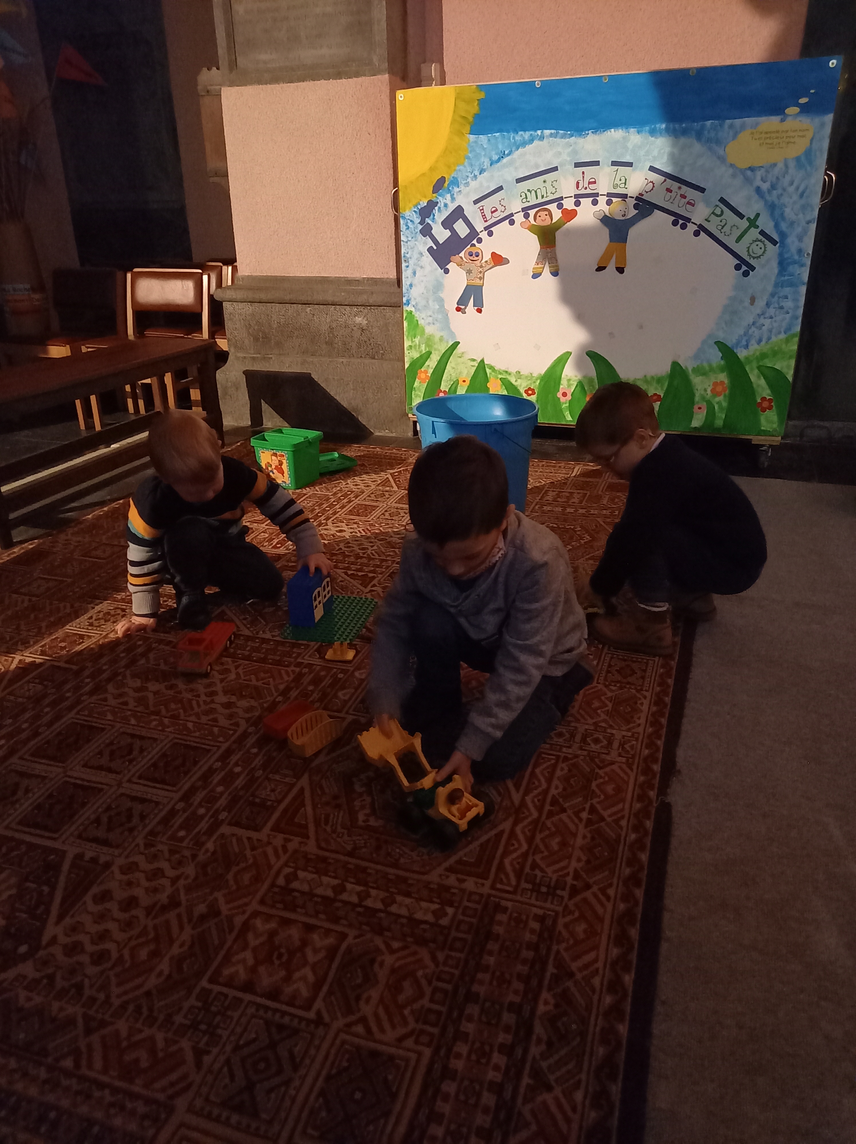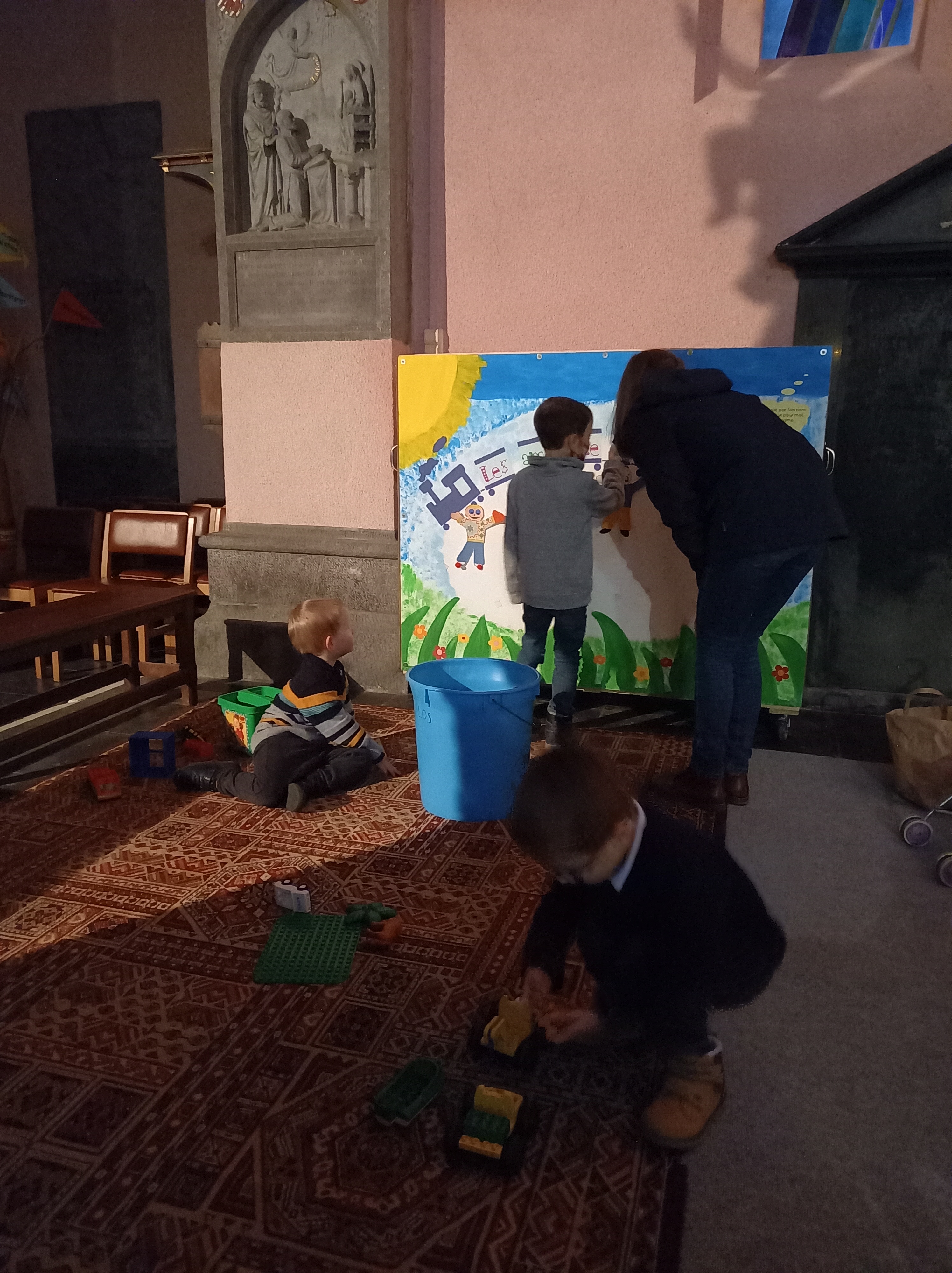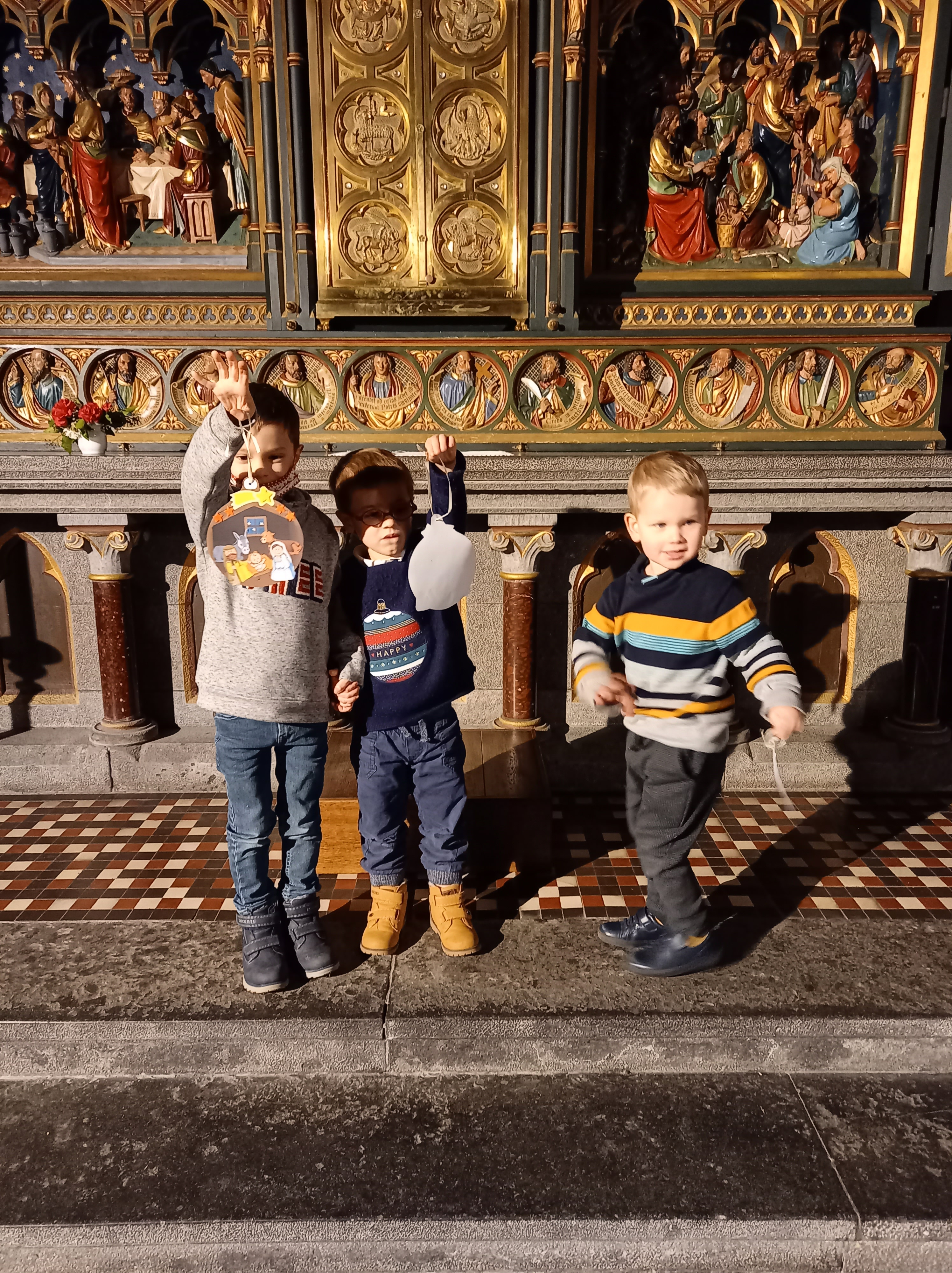 Les enfants et leurs parents étaient enthousiastes samedi dernier à vivre leur rencontre de la P’tite Pasto en l’église de La Roche ! Devant la crèche, ils ont écouté le conte de Noël, joué ensemble, bricolé une belle boule avec la crèche pour accrocher au sapin à la maison !
