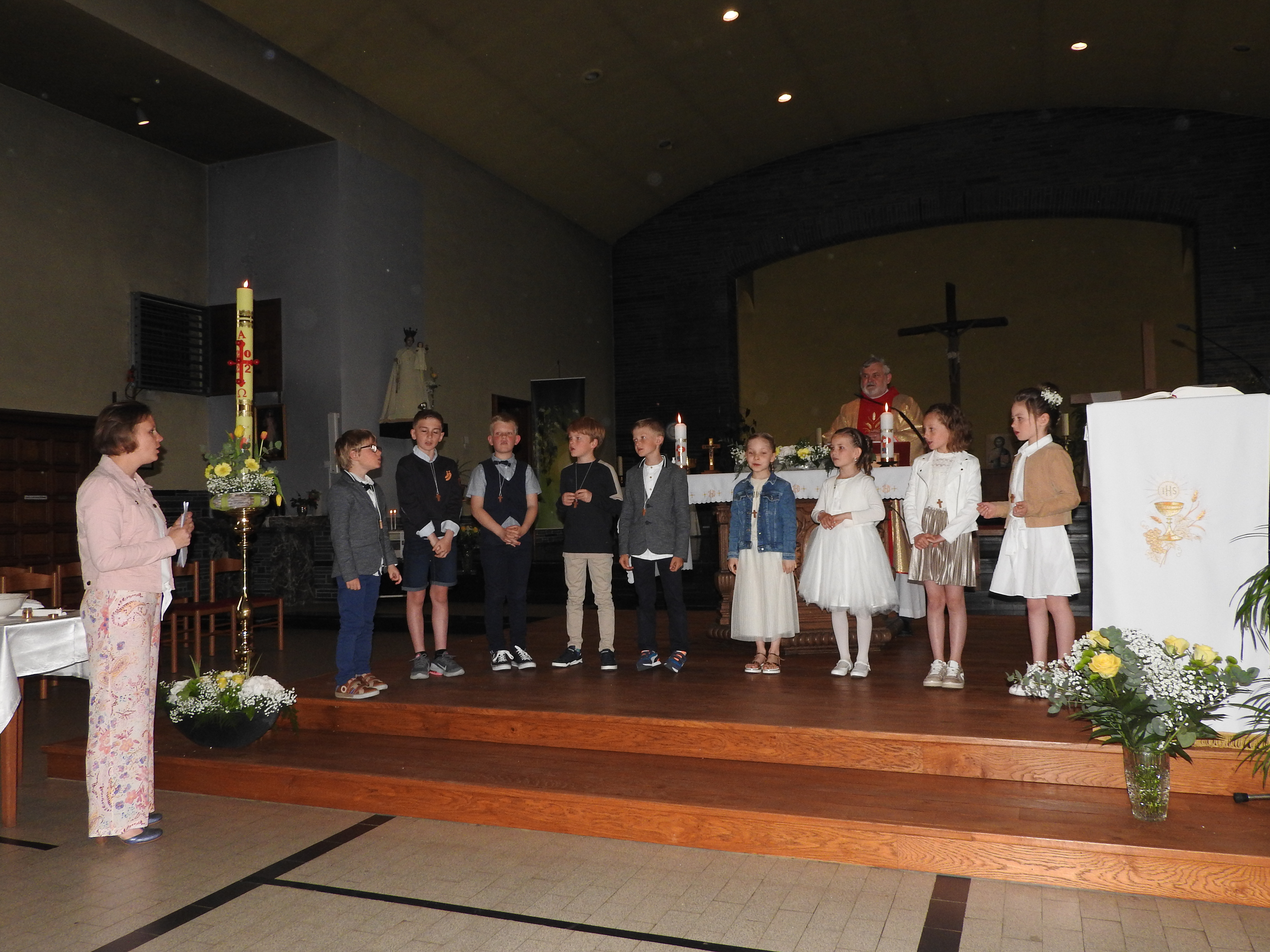 Ce dimanche 1 mai 2022, neuf enfants de l’Unité Pastorale Champlon-Tenneville se sont retrouvés en l’église de Tenneville entourés par une assemblée nombreuse et recueillie pour célébrer la fête de leur première eucharistie.