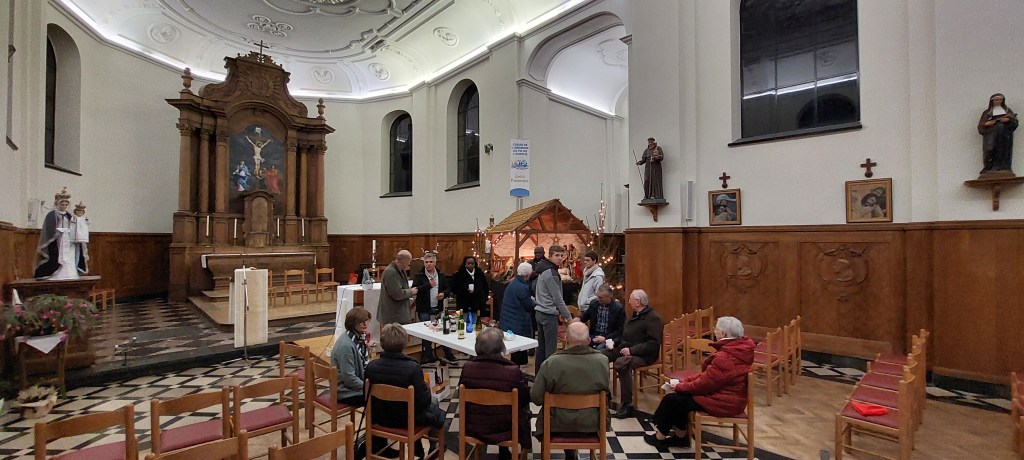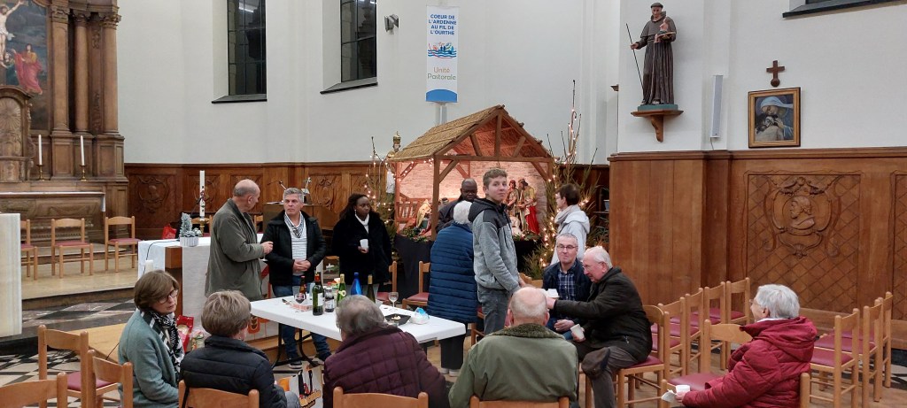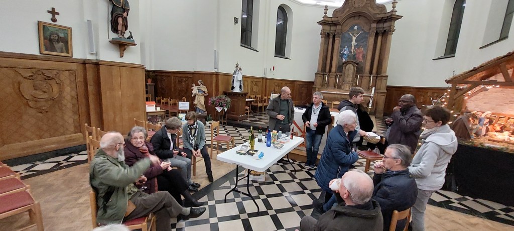 À l’issue de la messe dominicale qui a eu lieu le soir du samedi 7 janvier 2023 en l’église de Dochamps, l’équipe de proximité de Dochamps-Samrée a organisé un temps de convivialité, au cours duquel quelques fidèles de nos deux paroisses ont échangé des vœux pour une bonne année 2023.