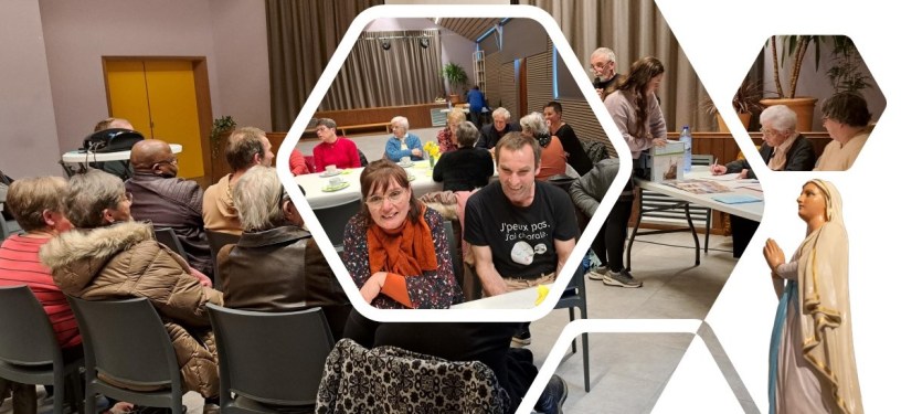 C’est entourés des Abbés Auguste, Raphaël, Aphrodis et du père Voidek ainsi que des assistantes paroissiales Véronique et Hadeweij que les sympathisants des « Amis de Lourdes » ont assisté en la salle « Li Mahonette » à Beausaint au tirage annuel des bourses pour se rendre en pèlerinage vers la cité mariale.