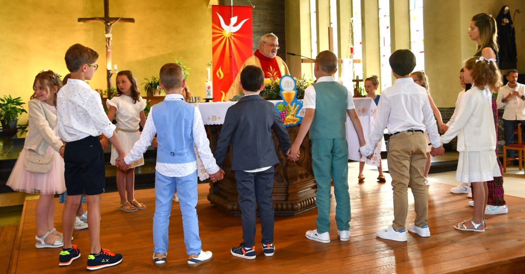 Le dimanche 21 mai, en la même église, 14 enfants de UP Champlon-Tenneville ont reçu pour la première fois le sacrement de l’Eucharistie entourés par leur famille et une assemblée très nombreuse.