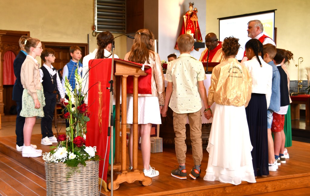 Entourés de leur parrain et/ou de leur marraine, accompagnés par leur famille et une assemblée recueillie, tous ont été attentifs à l’homélie inspirée par les lettres reçues par le confirmateur dans lesquelles chaque jeune lui posaient des questions concernant la confirmation et l’Esprit Saint.