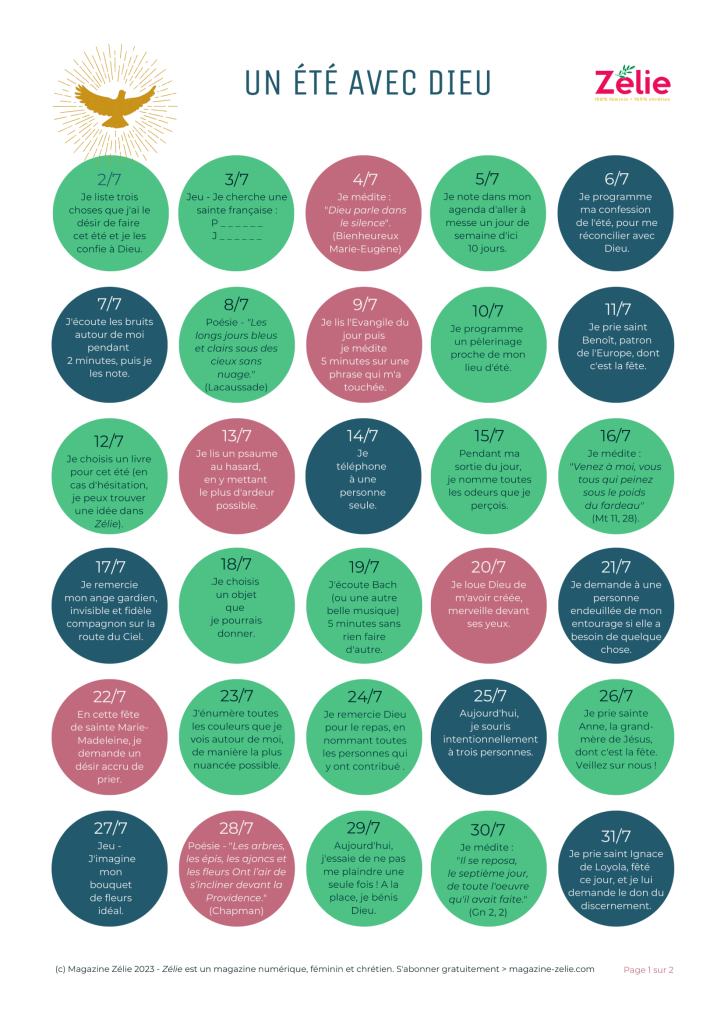 Le parcours « Un été avec Dieu » vient de commencer ! Deux mois pour se reposer auprès de la vraie Source, le Seigneur. Prière, actions, poésie, détente… Un moyen simple et gratuit pour se reconnecter à l’essentiel.