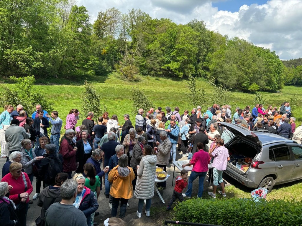 Ce lundi 20 mai 2024, le soleil était au rendez-vous ainsi qu’une cinquantaine de marcheurs au départ de l’église de Hives jusqu’à la grotte de Wyompont.