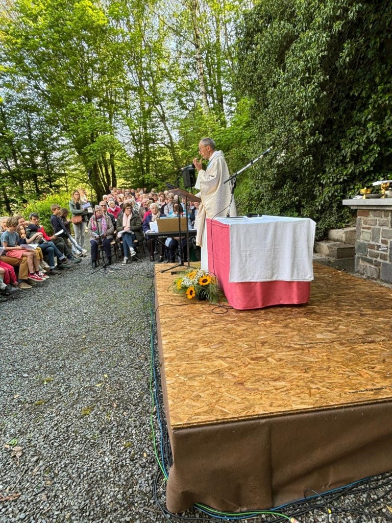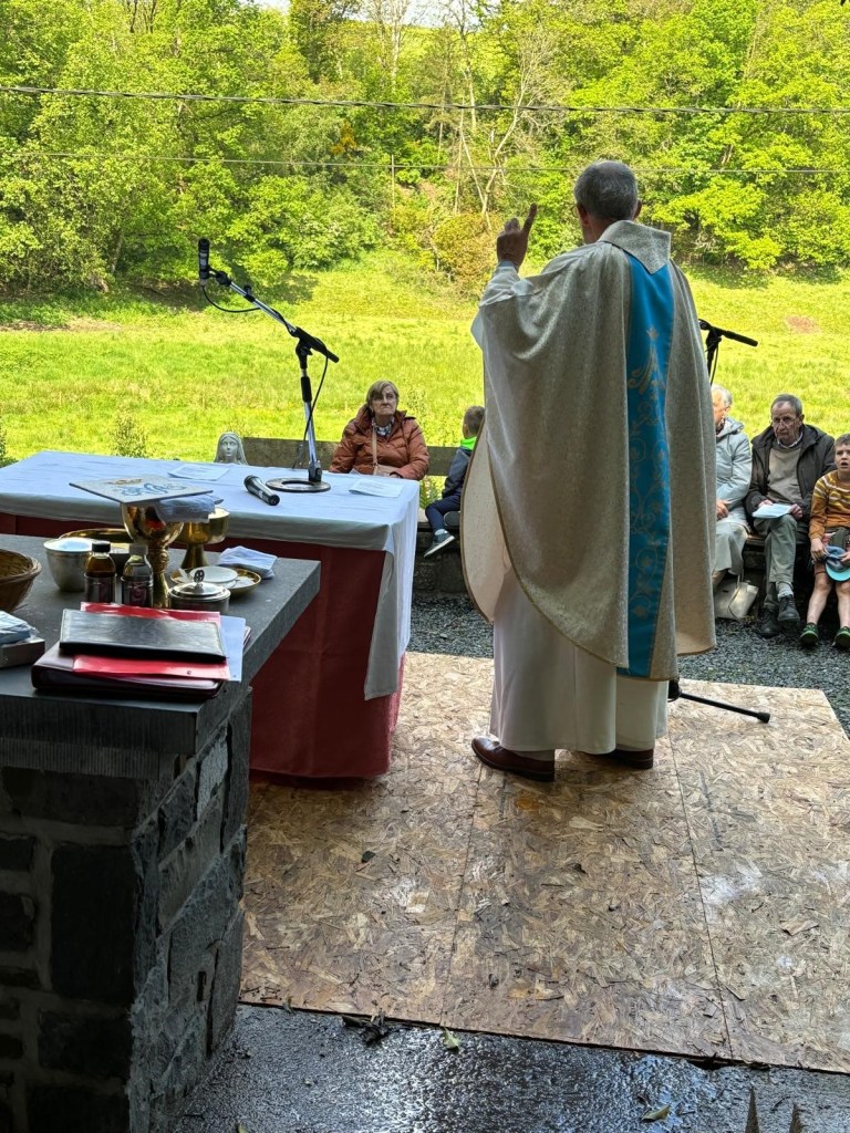 De nombreux pèlerins venus d’un peu partout ont participé à la messe à la grotte présidée par l’abbé Fernand STRÉBER et concélébrée par à les prêtres de nos unités pastorales de Rendeux, de La Roche-en-Ardenne et de Tenneville et monsieur le doyen de notre doyenné Nord Ardenne.