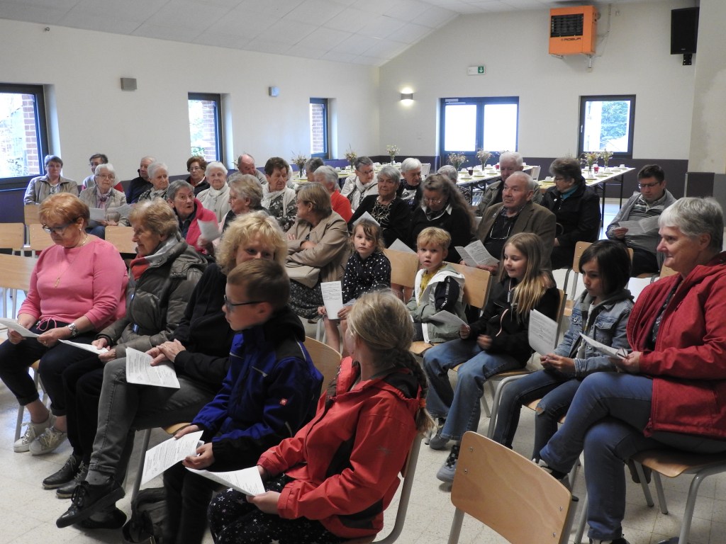 Malgré un temps maussade et froid , une quarantaine de personnes dont 6 enfants de la catéchèse se sont déplacées pour assister à la messe du réconfort ce mercredi à la salle du village de Journal.