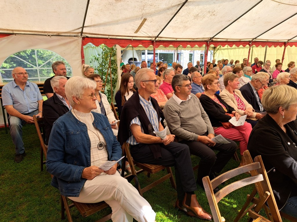 Ensuite, à 10h30, sous les tonnelles installées dans le jardin de la ‘Maison du Plateau’, ils ont pu participer à la messe présidée par l’abbé Auguste.