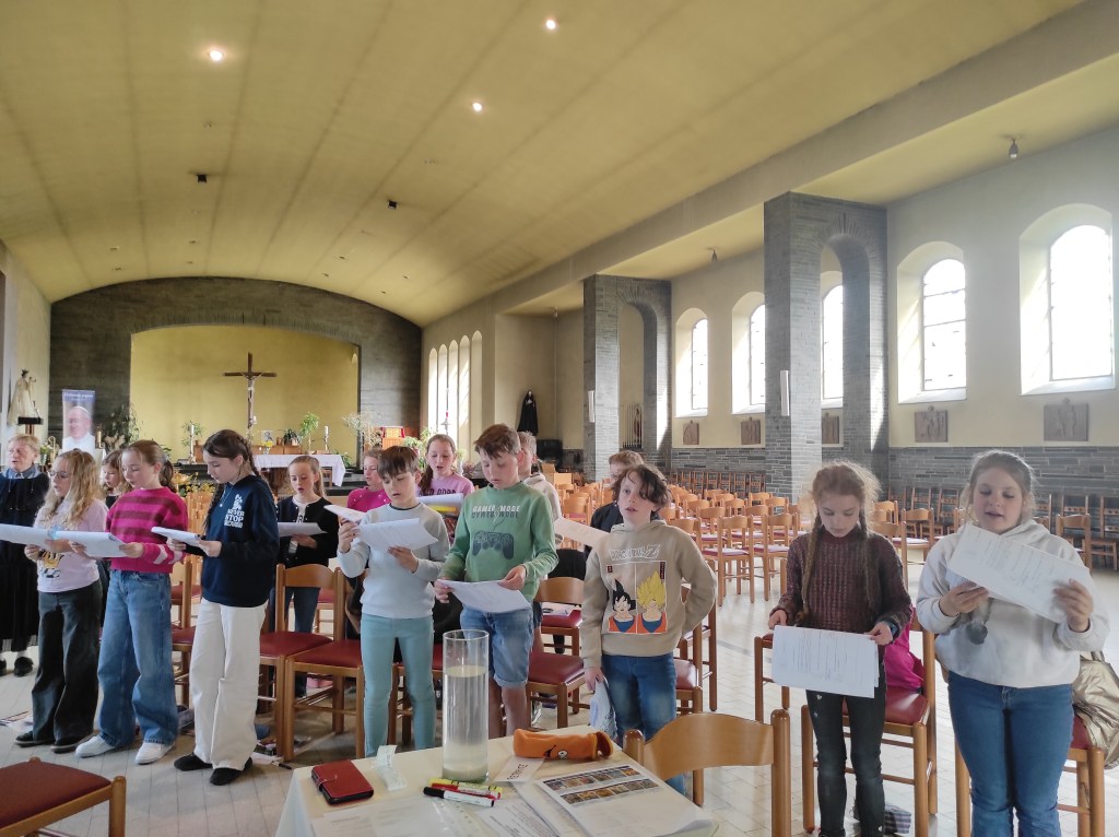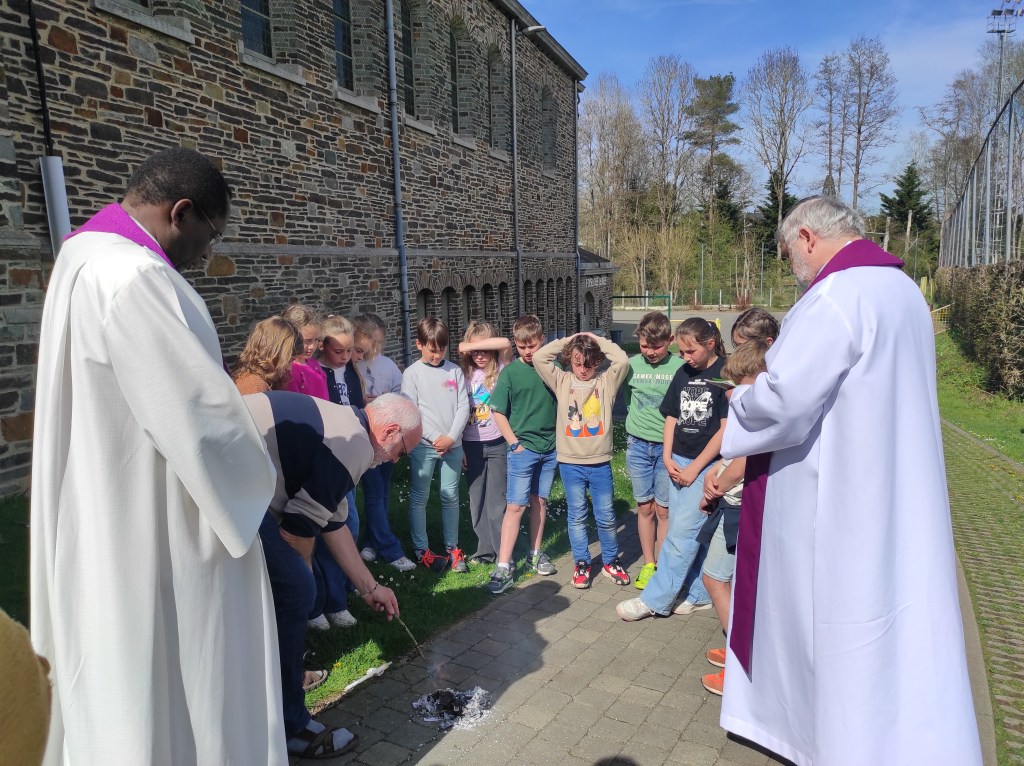 Nous avons terminé cette journée de retraite par la veillée pascale en l’église de Champlon, pendant laquelle une croix nous a été remise, croix que nous porterons le jour de notre confirmation : samedi 7 juin.