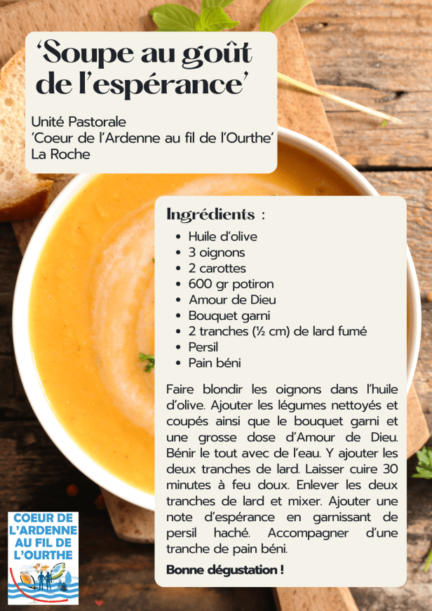Dimanche dernier, l’Unité Pastorale « Cœur de l’Ardenne au fil de l’Ourthe » a participé au Festival de la Soupe. Cet événement, déjà la 21ème édition, organisé par le Syndicat d’Initiative de La Roche, a été marqué par une ambiance conviviale et par la joie des participants et des visiteurs !