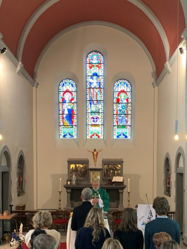 Le père Woidek célébrant la messe de ce dimanche a trouvé les mots justes pour soutenir la solitude du pèlerin : à chaque célébration de la messe et également lors de ses prières personnelles, une intention particulière sera portée à Antoine, et de même, la famille d’Antoine trouvera la protection du Seigneur tout a long de son absence.