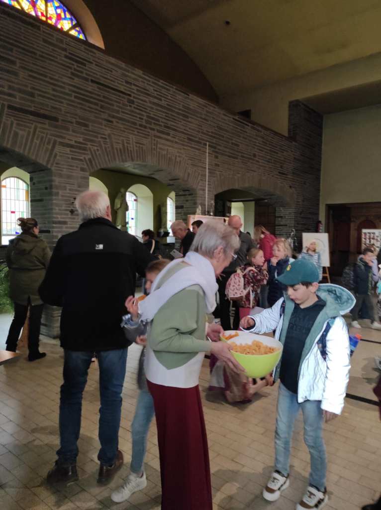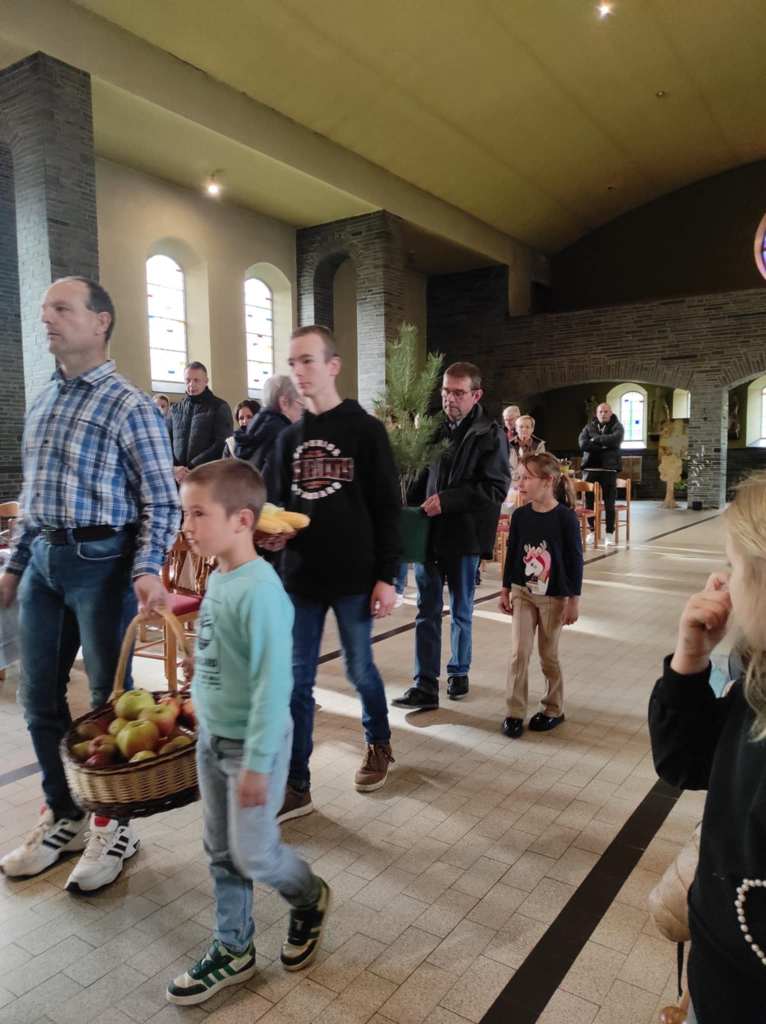 Les enfants de la catéchèse ont animé cette célébration par des chants gestués, deux mamans ont lu la lecture de la création en dialogue et l’homélie du Père Voidek avait pour thème : « Paix avec la création », il nous a parlé de saint François d’Assise, témoin lumineux de l’Evangile, homme de paix, de fraternité et de simplicité. Lors de la procession des offrandes, des produits de la terre ont été portés par des paroissiens.