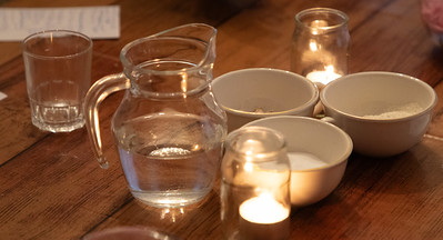 En attendant que les pizzas soient cuites, l’ambiance est devenue plus priante. Quatre ingrédients de base ont été placés au centre de la salle : l’eau, la farine, le sel et le levain. À travers des textes bibliques, les participants ont découvert leur symbolique :
